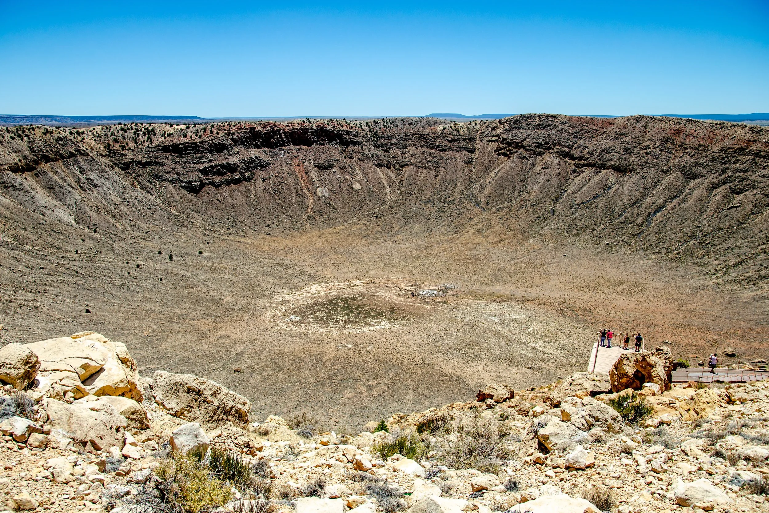 Meteor Crater is a 50,000 year old meteorite impact crater about 37 miles east of Flagstaff. Meteor Crater lies at an elevation of 5,640 ft above sea level. It is about 3,900 ft in diameter, some 560 ft deep, and is surrounded by a rim that rises 148 ft above the surrounding plains. For more about the visitor center or guided tours Click Here.